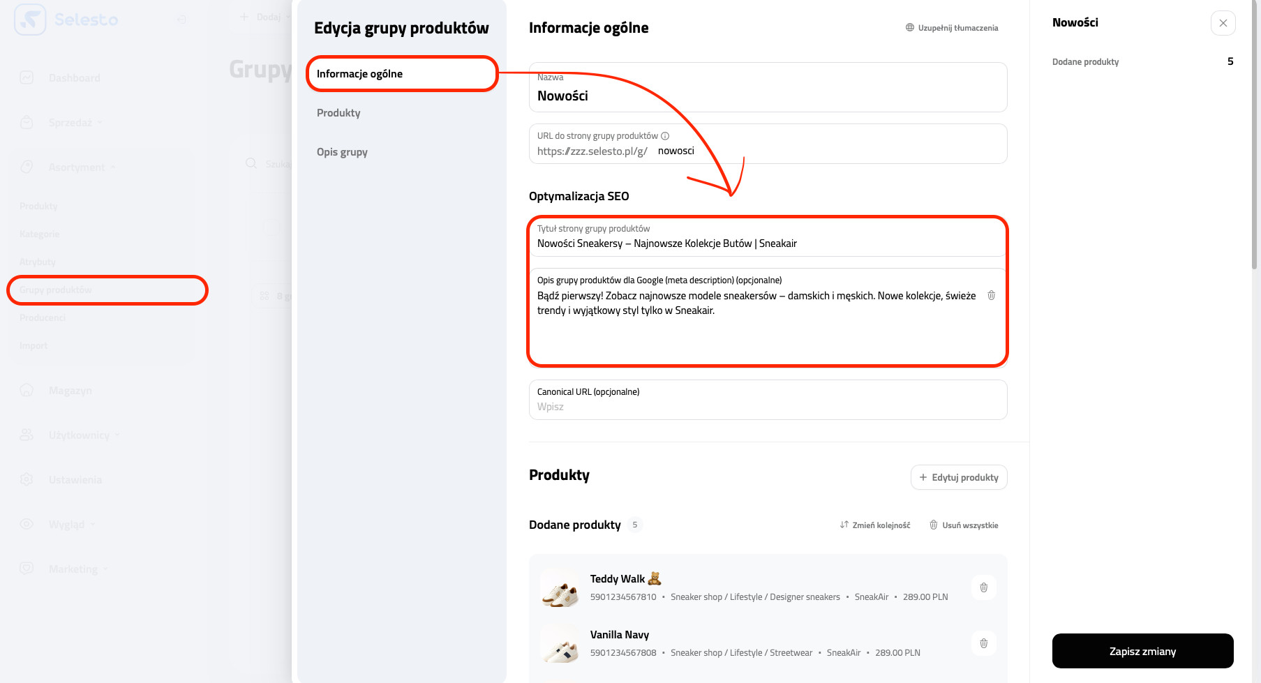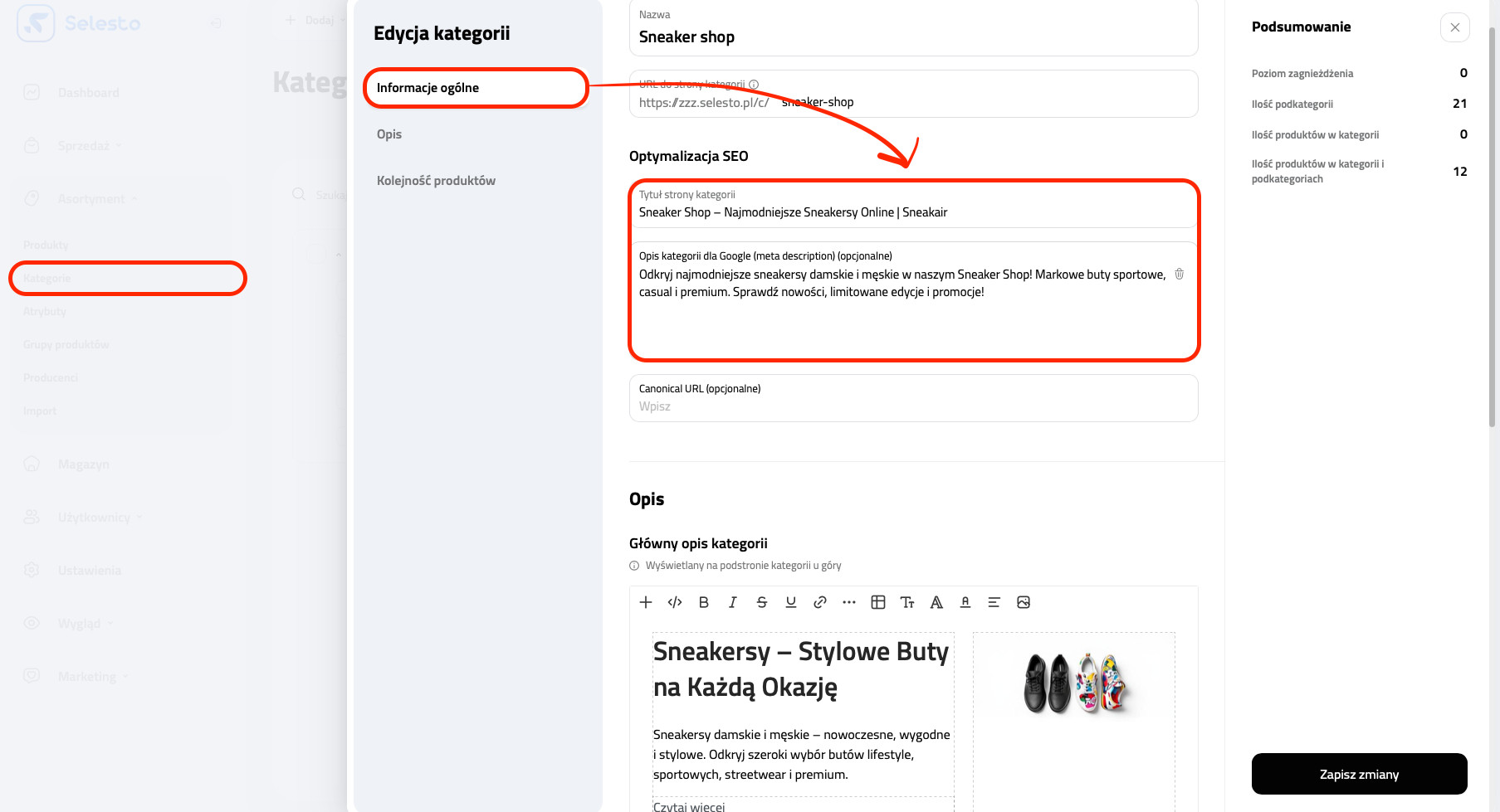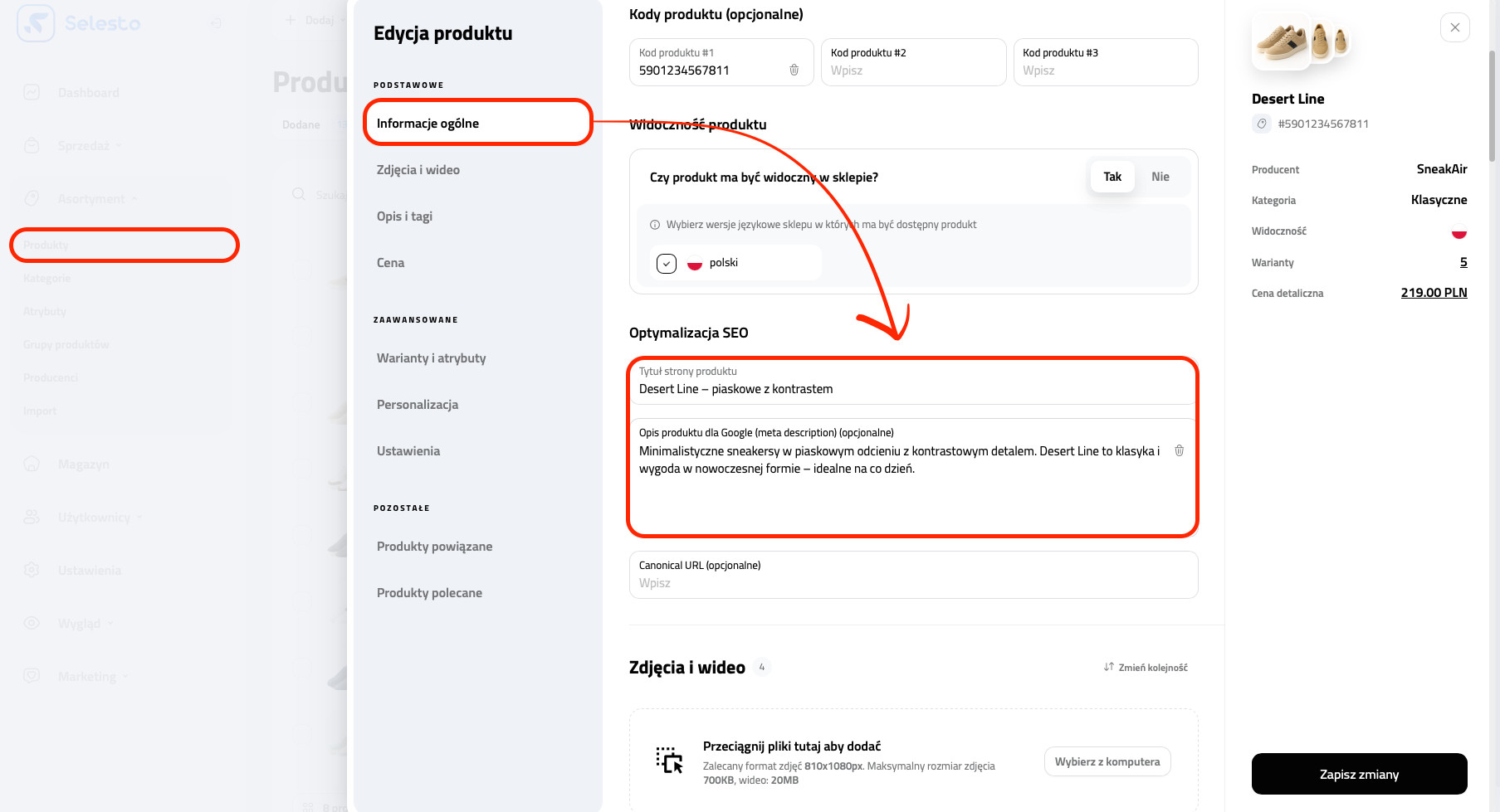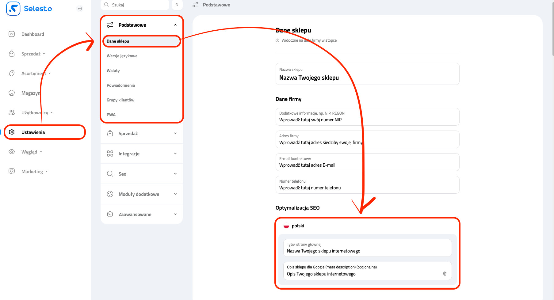 SEO - definiujemy tutaj m.in.: meta title i meta descriptio dla tej konkretnej strony